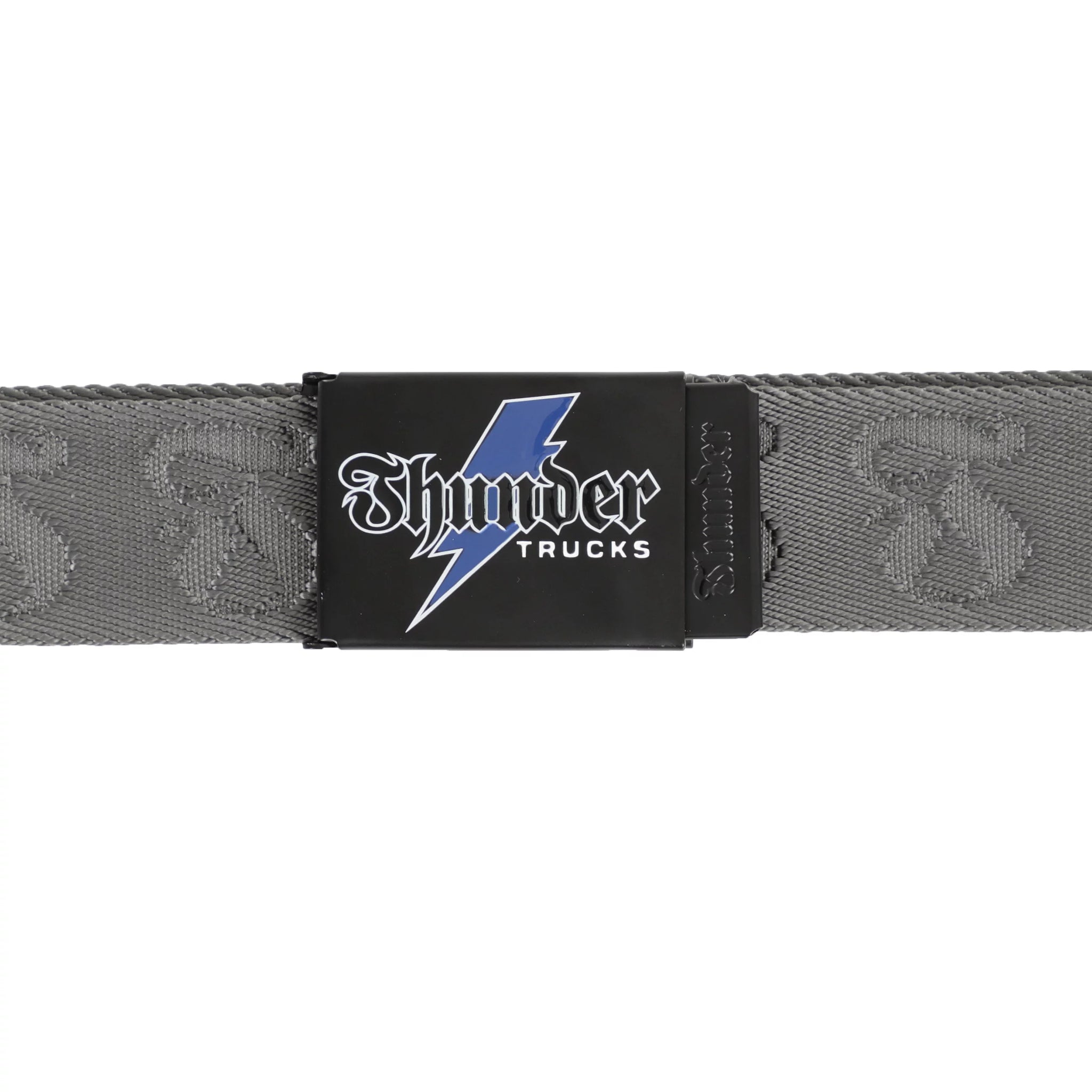 Thunder Bolt Script Jacquard Web Belt - (Grey/Black/Blue)